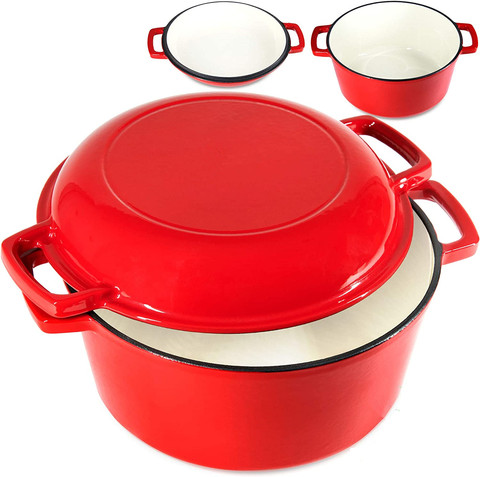 Bright Houseware Hierro fundido 2 en 1 Combo Cocina Esmaltada Antiadherente Juego de hornos holandeses con tapa de sartén